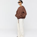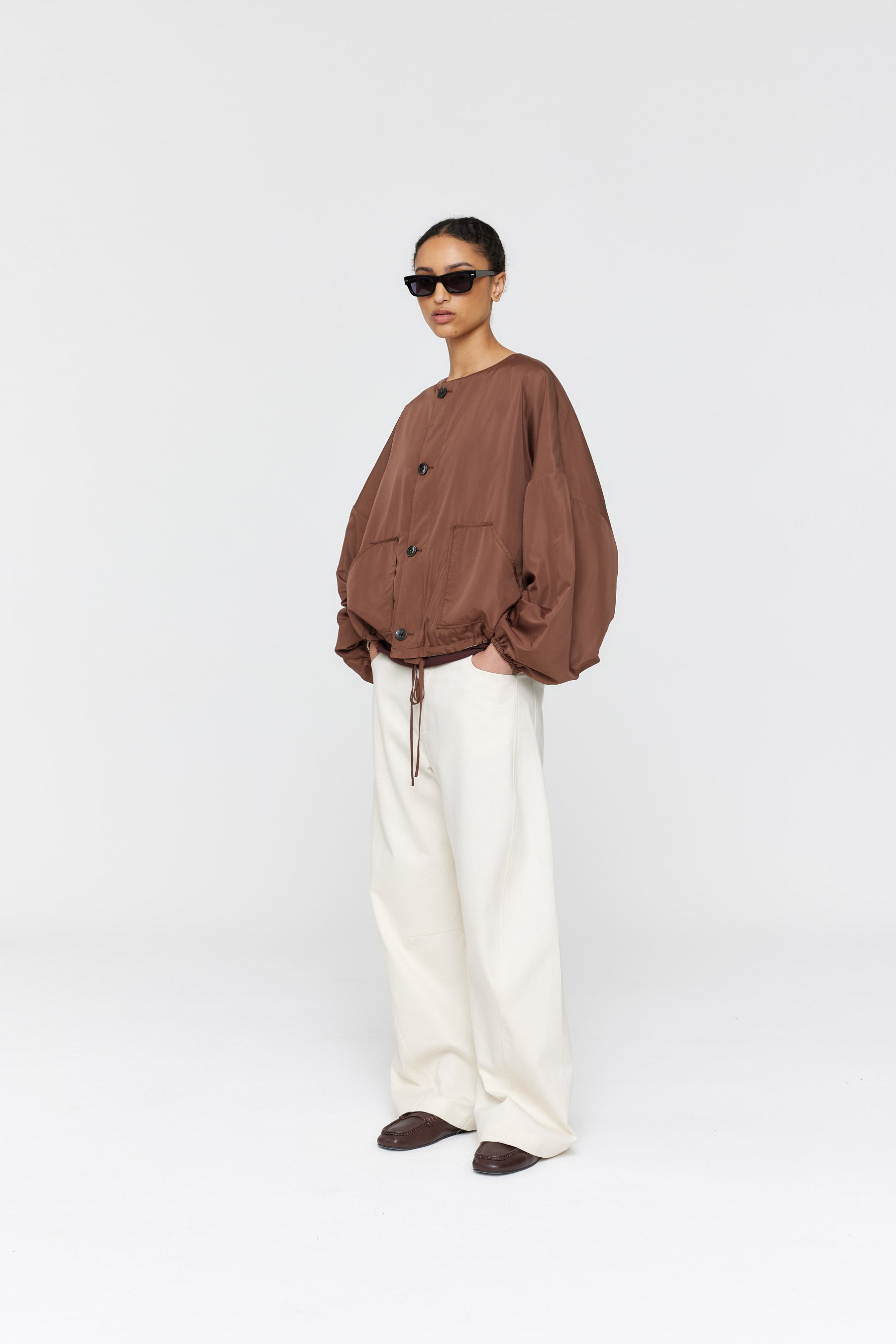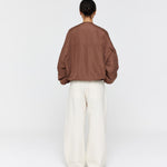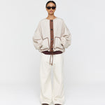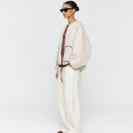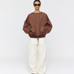 Stay warm and stylish with the Padded Forster Jacket. This quilted jacket is lightweight and features two large contrast patch pockets for convenience. The generous, dropped shoulder fit is complemented by contrast binding edges. Cropped length with fine drawstring ties on the waist. With its reversible design, the jacket is quilted on one side and lightly padded on the other. This jacket is perfect for any occasion.