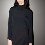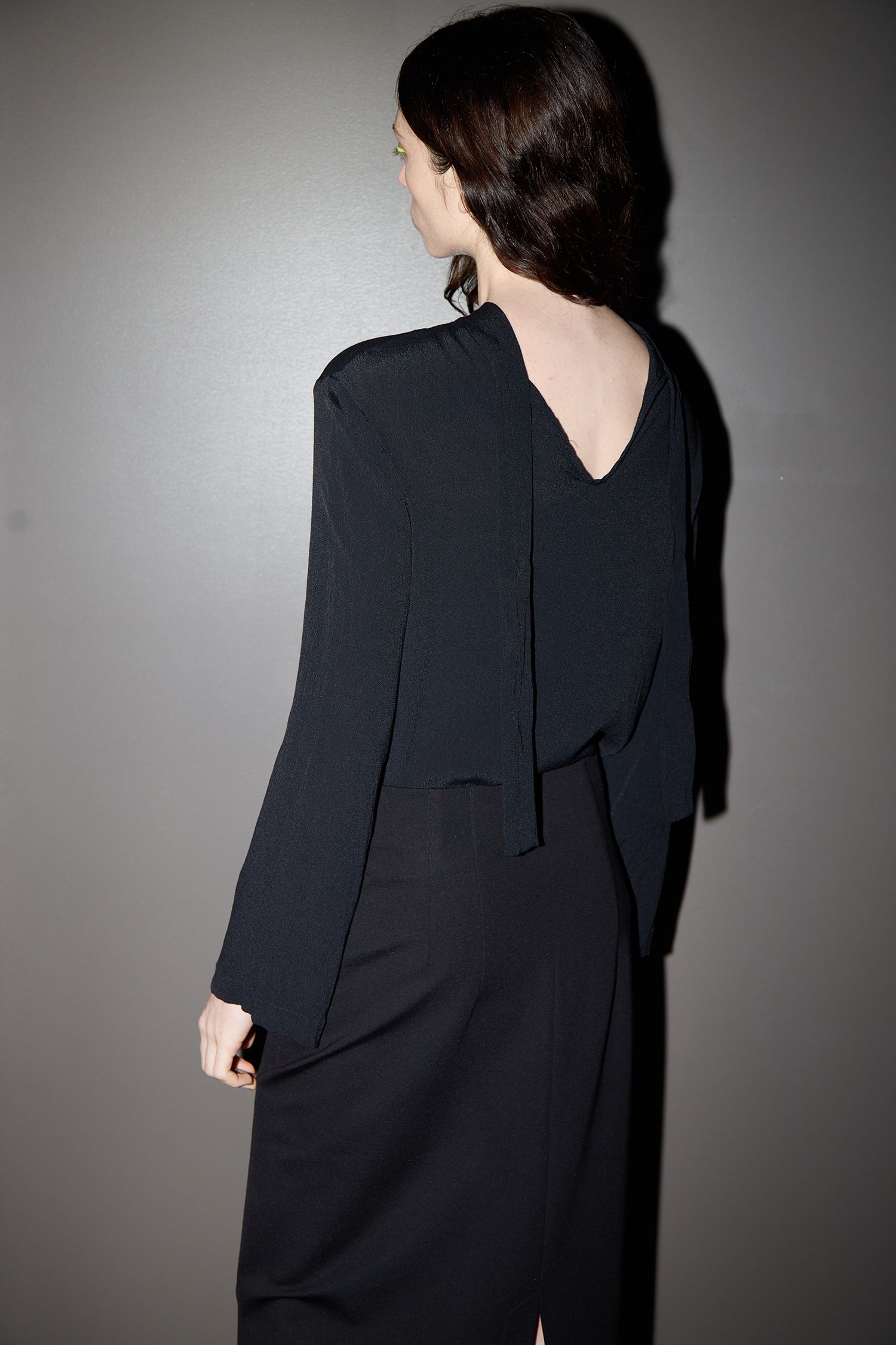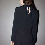 - Tie-neck with rear keyhole opening