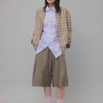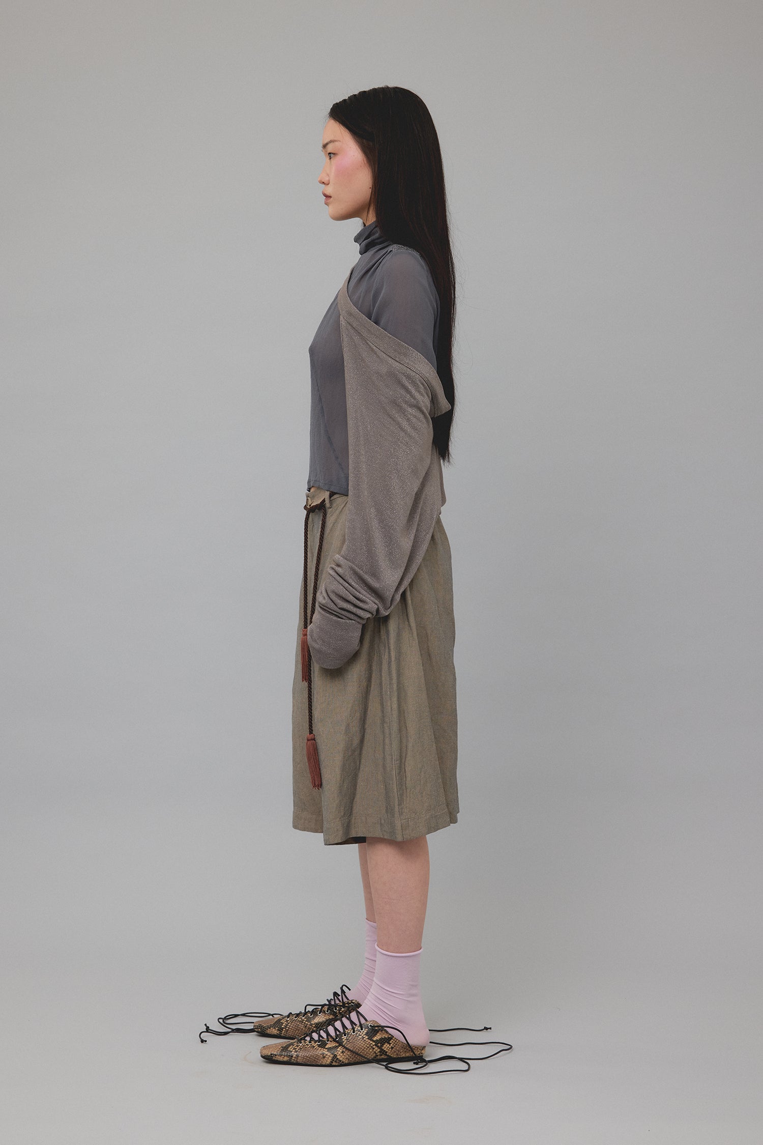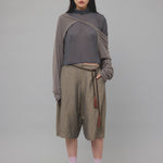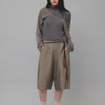 - Drop crotch shorts in a soft washed linen/viscose blend